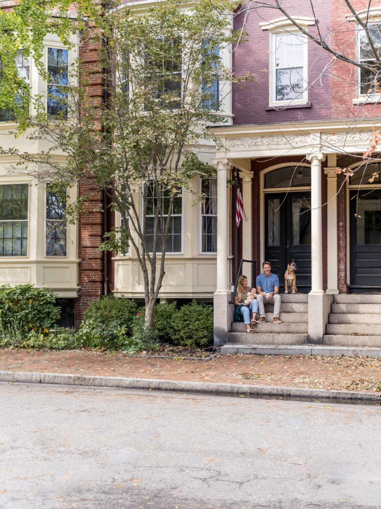 “Everything happened in this house,” says Jennifer Thayer. “The day we moved in, Greg proposed.” The house, a West End brownstone, is where the couple waited out the pandemic (they moved into the Pine Street property in late 2019). It’s also where they started their family (their daughter, Annie, is only weeks old). It seemed, at first, like an impossibility. A historic brownstone couldn’t possibly be in their price range, they thought. “Our realtor said, ‘You should check it out anyway; it’s actually a multi-unit,’” Jen remembers. “And the moment we walked in, we were in love.”