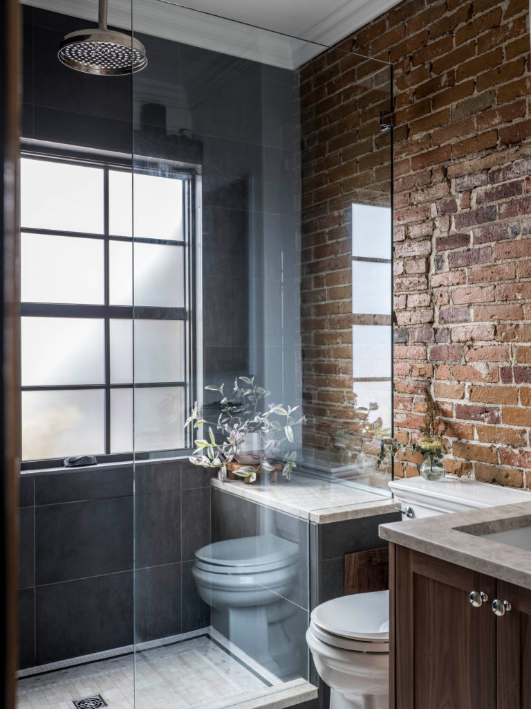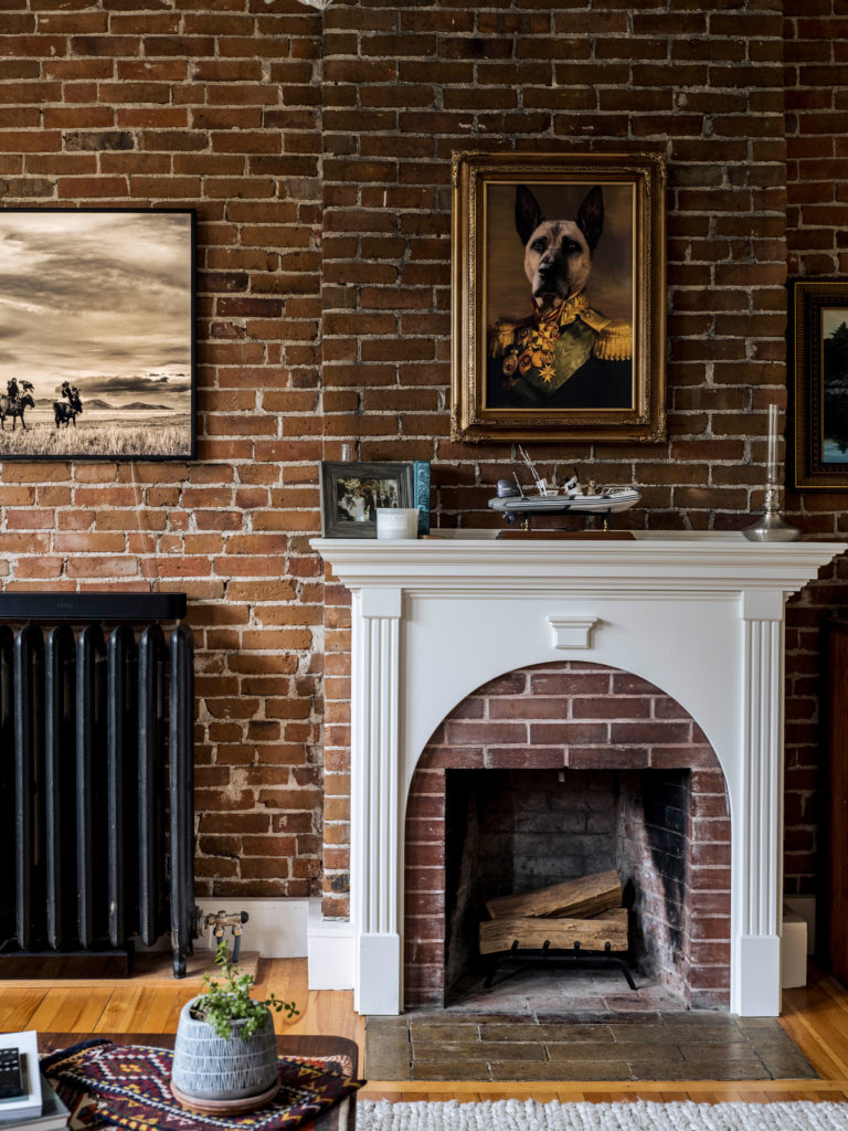 According to Greg, the building was a bit of a “diamond in the rough.” But, he says, “we could see that, underneath it all, it had good bones.” The previous owner had been renting out the upstairs unit on Airbnb, and an endless parade of temporary lodgers had taken their toll. It had been listed as a single unit, but because their realtor analyzed the listing details and realized it was in fact two units, the couple swiftly determined if they bought it, moved in upstairs, and rented out the bottom to a long-term tenant, maybe they could make the mortgage work. “The house had high ceilings, great mouldings, and fully exposed brick walls throughout. You could just see that it could be something great,” says Jen. Plus, there was the rooftop deck to consider. “It’s so rare to get a space like that in the middle of the city,” adds Greg.