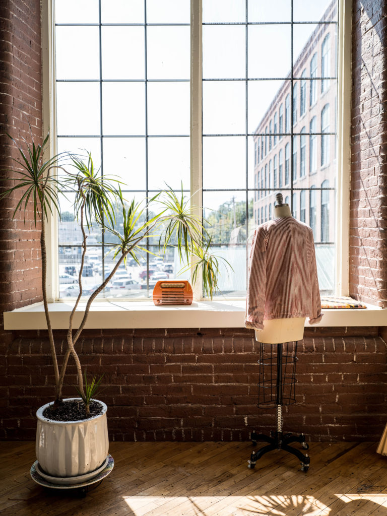 When asked why she chooses to work in a state not known for a robust fashion industry, Fisher assures me the community and the level of support in Maine are unparalleled. As for future collections, she has a few new pieces in the works but doesn’t intend to produce a new line every season. Instead, she wants to plan collaborations with other Maine artists and hold events like fashion shows in her studio that will bring people together. “Poetry is an effort towards connection,” says Fisher. “I could write poems and put them in a book. Or I could make garments. But the fact that each piece of clothing I create is imbued with an idea or a question that I hope might resonate with whoever wears the garment makes a connection where there might not typically be one.”